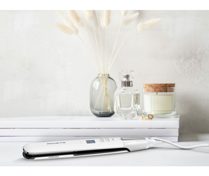 Завдяки вбудованій щітці з натуральною щетиною, що забезпечує приголомшливі результати день за днем, ваше волосся набуває природного об'єму, забезпечуючи м'яке випрямлення, наповнене рухом і життєвою силою.