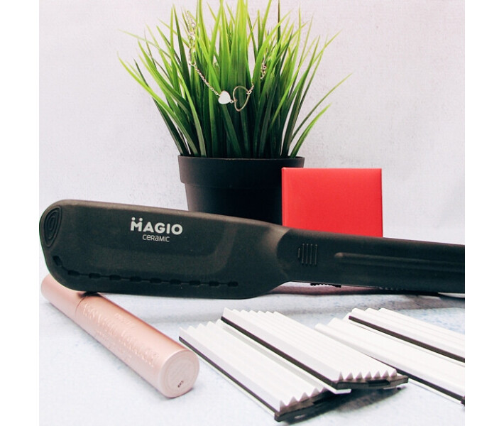 Стайлер Magio MG-679 стане Вашим незамінним універсальним помічником, адже він поєднує в собі можливості випрямлення волосся і гофре-укладки. Для цього передбачені 3 комплекти знімних керамічних панелей - маленькі і великі хвилі, а також випрямляє пластина, розмірами 25х110 мм кожна. Такі пластини не тільки відмінно справляються зі своєю роботою, а й дбають про здоров'я волосся, не пошкоджуючи їх і забезпечуючи блиск. Працює прилад при максимальній температурі 180 ° C, при цьому готовий до експлуатації вже через хвилину. Він має світлову індикацію включення, а також вимикається механічним способом. Для зберігання Magio MG-679 передбачений спеціальний фіксатор, а для зручності у використанні - 1,7 м шнур і петелька для підвішування.