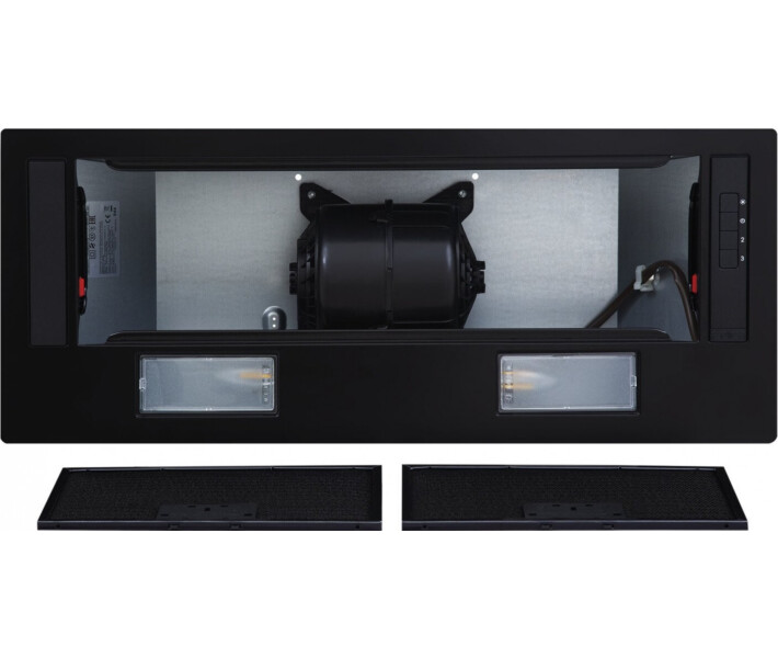 Модель витяжки Elica ERA C відноситься до повновбудовуваних приладів. Це означає, що зовні залишається видимим тільки тонка окантовка лицьовій панелі робочої області. Сама витяжка повністю встановлюється в підвісну шафу стандартного розміру. Глибина шафи становить 300 мм, що є стандартом для кухонних меблів. А висота витяжки не перевищує 18 сантиметрів, тому простір в шафі можна додатково використовувати для зберігання кухонних аксесуарів і приладдя.