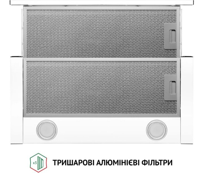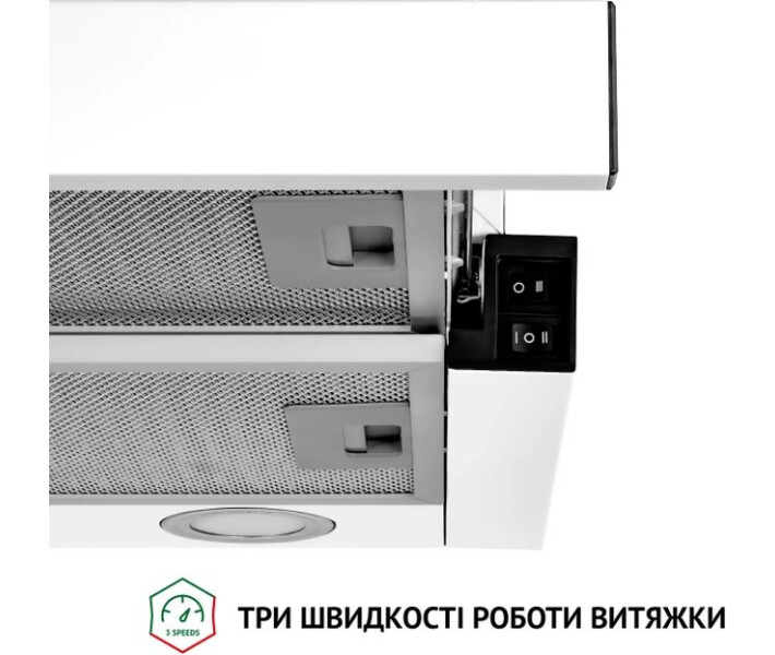 Керувати витяжкою зручно та легко! Механічна панель управління складається з перемикачів швидкостей та увімкнення/вимкнення освітлення. Практичне розташування механічних перемикачів управління з боків дозволить здійснювати швидкі маніпуляції з пристроєм без зайвих зусиль.