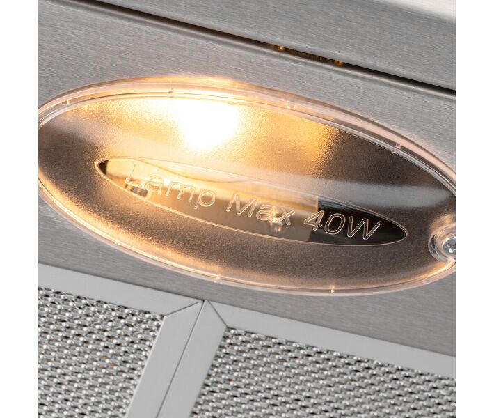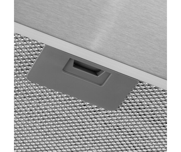 Pyramida UX 60 управляється за допомогою захованих кнопок на висувній панелі, щоб вибрати необхідні для вас параметр або швидкість роботи, досить висунути панель і вибрати необхідні режим. Витяжка має алюмінієвий жироулавливающий фільтр, який затримує великі забруднення і жирові частинки.