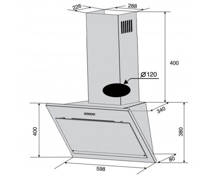 Поверхня виконана в сріблястому кольорі з чорною окантовкою. Світлодіодна лампа потужністю 1 Вт здатна стати окремим джерелом світла для вашої кухні. З кнопковими елементами управління абсолютно не складно розібратися. Завдяки маленьким розмірам витяжка з похилою установкою компактно впишеться в будь-який сучасний інтер'єр:Ширина, см:60, Глибина, см:34, Максимальна висота, см:78. Вага, кг:10.5.