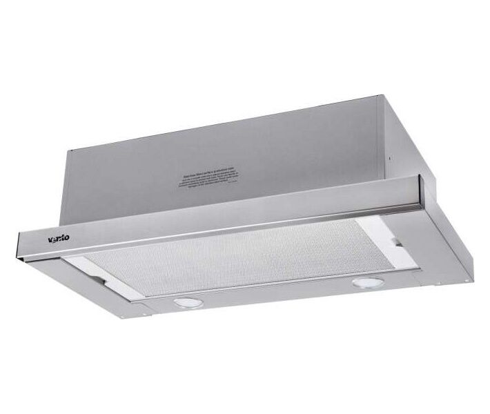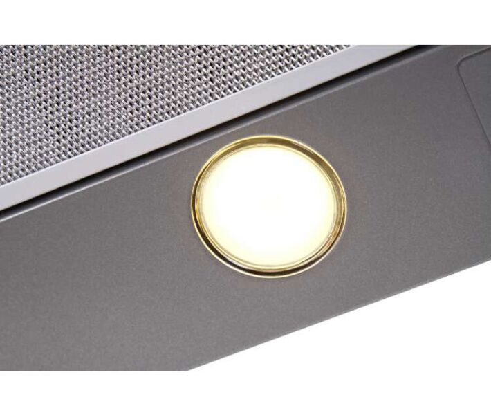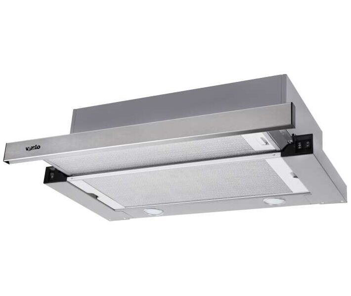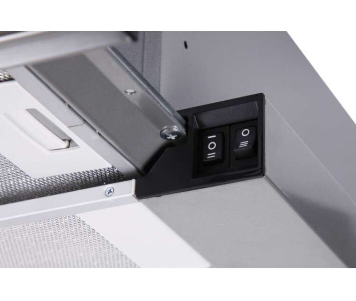 - Модель розроблена для установки в меблі з шириною корпусу 60 см. - Фасад і корпус витяжки виготовлені з нержавіючої сталі. - Потужність двигуна 750 м.куб, він може працювати на одній з 3 швидкостей. - Кнопки реалізовані у вигляді перемикачів, вони знаходяться відразу за висувною планкою. - Режим очищення повітря в приміщенні - відведення. - Для освітлення робочої зони витяжка оснащена сучасними світильниками з технологією SMD LED - 2 лампи типу Gu 10 LED * 3w. - Витяжка поставляється з встановленим зворотним клапаном, двома алюмінієвими фільтрами. Також в комплекті присутні кріплення, гарантія та інструкція.