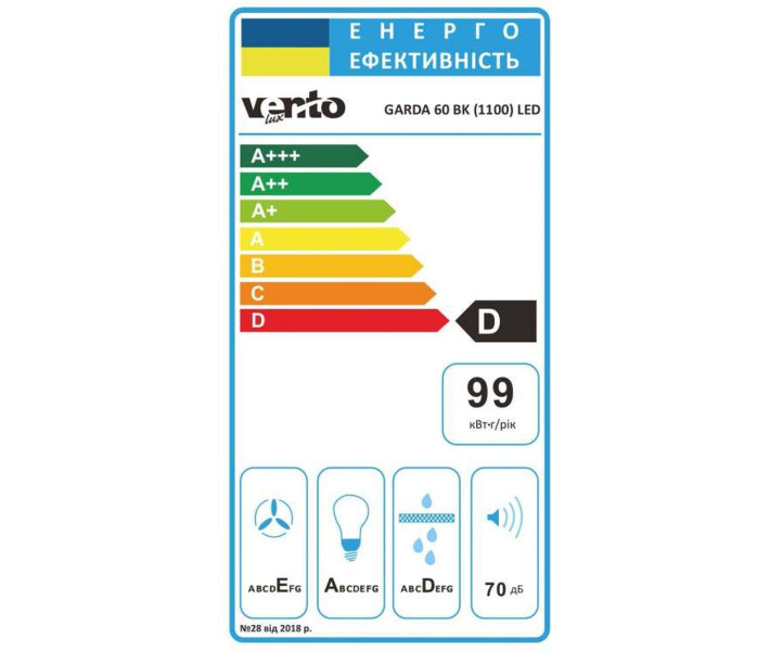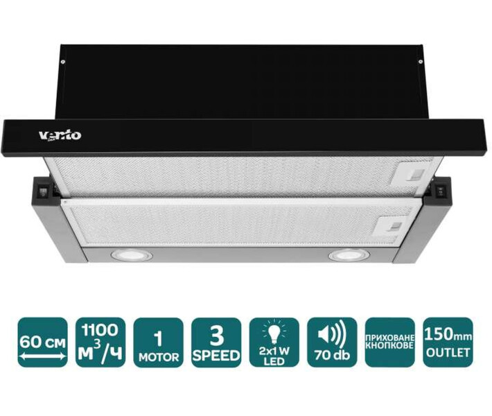 Інформація Витяжка Ventolux GARDA 60 BK (1100) LED