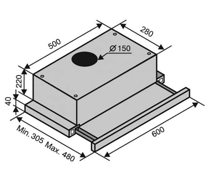Представлена витяжка адаптована для повної установки в вентиляційний канал. За рахунок роботи в режимі відведення пристрій отримує чудову продуктивність, яка в кілька разів перевищує цифри, заявлені для режиму рециркуляційного очищення повітря. Перед установкою варто уточнити норми і правила, згідно з якими ви точно будете знати, чи дозволено в вашому домі проводити монтаж техніки у вентиляційній шахті.
