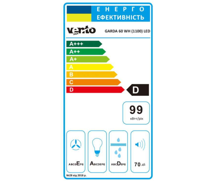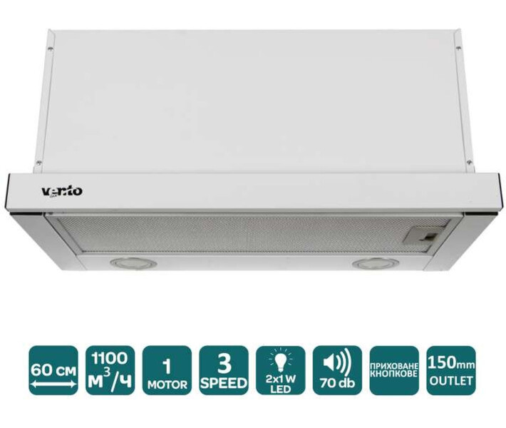 Інформація Витяжка Ventolux GARDA 60 WH (1100) LED