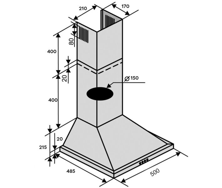 Купити Ventolux LIDO 50 BK (700) можна за доступною для такої моделі ціною і насолодитися чистим повітрям у себе в приміщенні. Управляється прилад за допомогою механічної панелі управління. У комплекті з витяжкою йде жироулавливающий фільтр, а також є можливість додаткової установки ще одного очисного активного фільтра.
