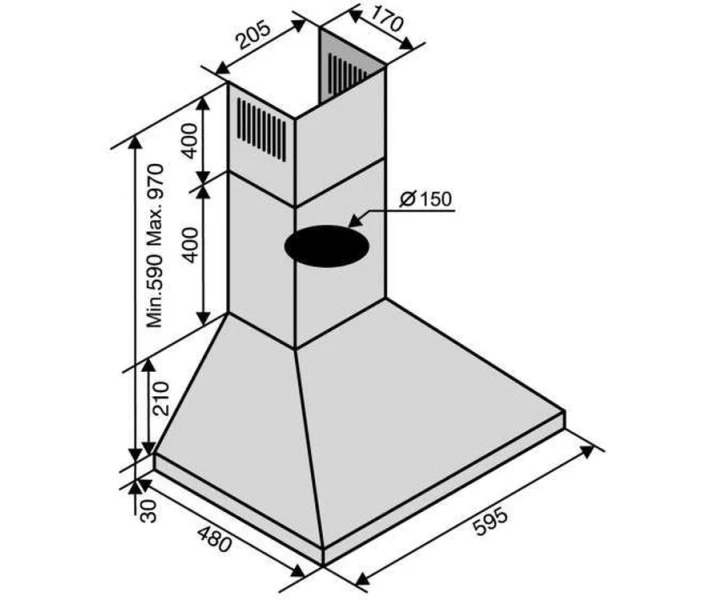 Камінна купольна витяжка, відведення/рециркуляція повітря, продуктивність 700 куб. м/год, кнопкове керування, 3 швидкості, LED освітлення 1х2 Вт, ширина 59.5 см, матеріал емальована сталь, колір чорний. Купити кухонну витяжку Ventolux MILANO 60 BK (700) ви можете, оформивши замовлення у нас на сайті, а також по телефону гарячої лінії.