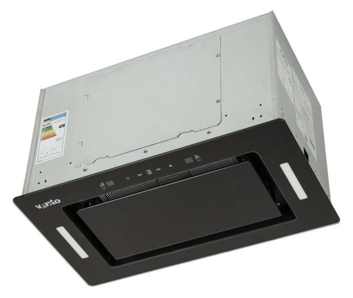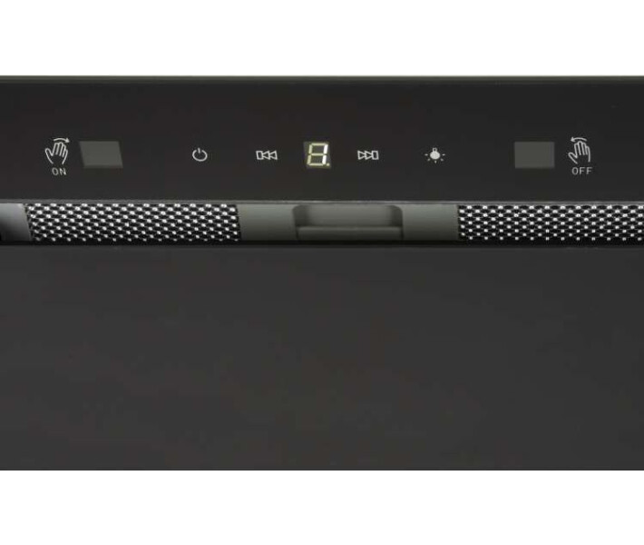 Модель має ширину 52см. Мотор має продуктивність 1200 м.куб – цього вистачить для очищення кухонь з площею 35-40 м.кв. Двигун розрахований на роботу у 3 режимах швидкості. Нижня частина моделі декорована гарним чорним склом. Управління сенсорне та за допомогою махів руками. Є маленький цифровий екран. У комплекті пульт дистанційного керування. Висвітлення має нестандартне для витяжок розміщення – з обох боків днища техніки. За рахунок цього 2 галогенні лампи по 20 Вт працюють дуже ефективно. Очищення повітря витяжка виконує за допомогою режиму відведення надвір. таймер.