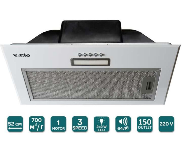 Витяжка обладнана потужним мотором та енергозберігаючим освітленням. Тому витяжка ефективно очищатиме повітря, створить додаткове освітлення варильної поверхні і буде економно використовувати енергоресурси. Придбати Ventolux PUNTO 52 WH (700) PB PC Ви можете, оформивши замовлення у нас на сайті, а також по телефону гарячої лінії.