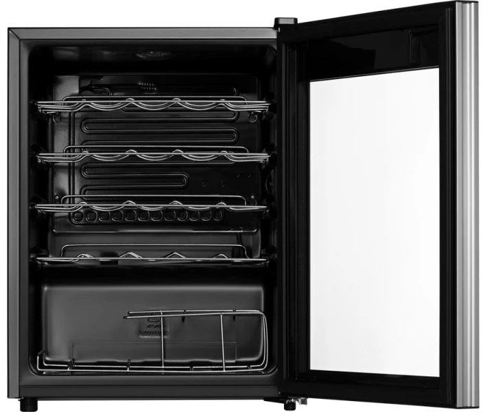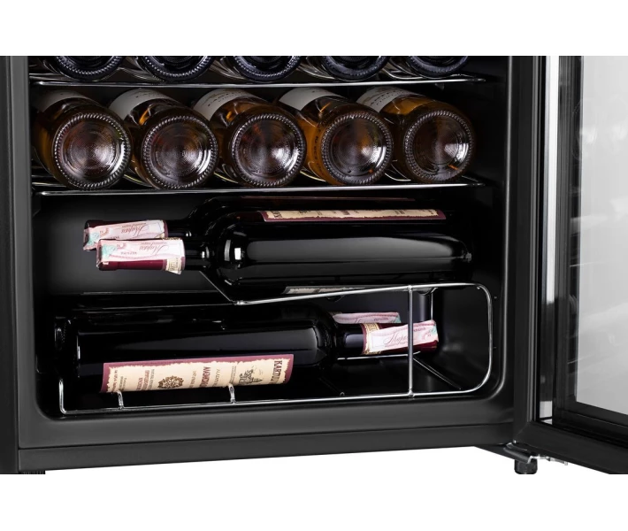 Даний варіант техніки має корисний об'єм 66 л, за рахунок чого не займає багато місця в просторі . При цьому всередині можна вмістити до 24 пляшок стандартного обсягу 700 мл. Ємності зручно розміщують на металевих поличках, пристосованих під дану тару: спеціальні виступи і поглиблення фіксують кожну пляшку, не даючи їй переміщатися самостійно.