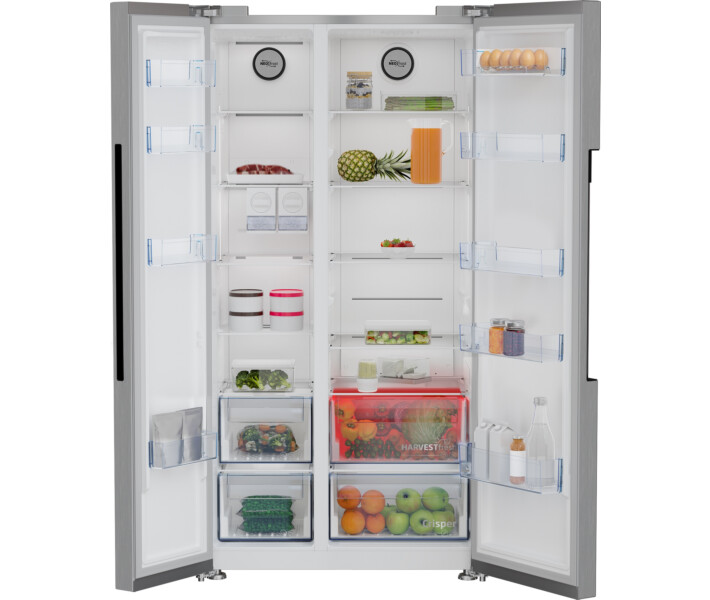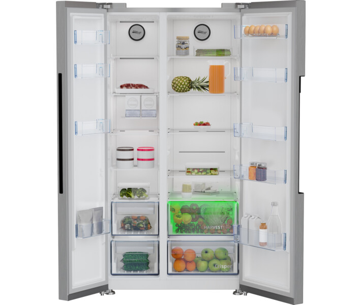 Місця в холодильні не буває занадто багато. Це знає кожна господиня. І навіть якщо на кожен день вам не потрібен великий простір, то в святкові дні або перед прийомом гостей необхідність в об'ємному холодильнику точно виникне. Тому, якщо у вас достатньо простору для великого кухонного приладу, варто вибирати максимально містку модель. Холодильник Beko GN164020XP відрізняється конструкцією Side-by-Side і внутрішнім об'ємом 640 літрів. Рекордні цифри досягнуті шляхом використання новітнього інверторного мотора сімейства ProSmart, а також сучасних ізоляційних матеріалів.