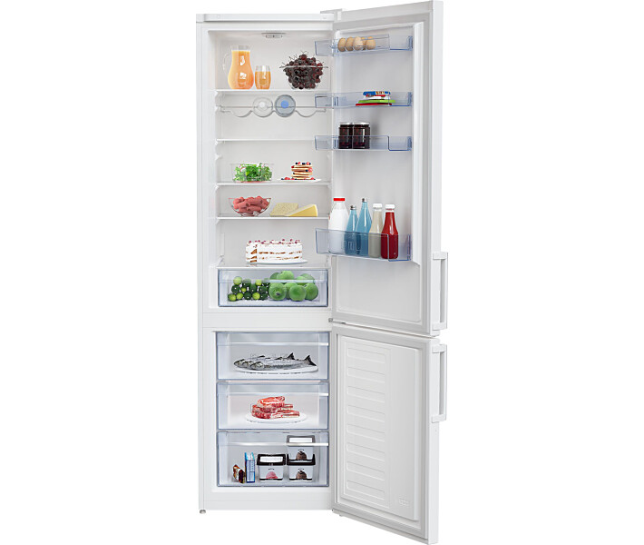 Новий холодильник від турецького виробника Beko RCSA406K31W - це величезний двометровий красень, який забезпечить багато місця для зберігання ваших продуктів. Якщо ви маєте в своєму розпорядженні простір для установки такої великої моделі, не варто собі відмовляти. 386 літрів загального корисного об'єму! Запас місця в холодильнику зайвим не буде, а ціна на нього дуже приємна!