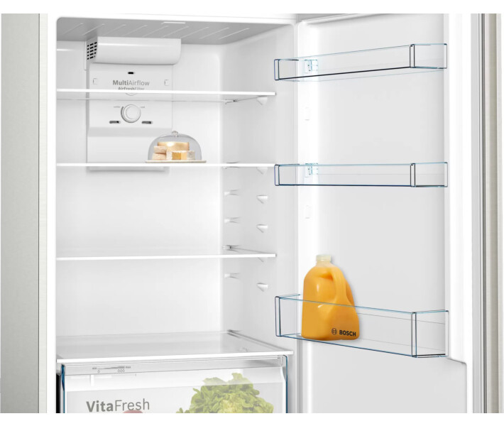 Модель Bosch KDN55NL20U використовує для охолодження систему NoFrost. Це означає, що Ви отримуєте всі переваги сучасної технології, зокрема, відсутність на продуктах льоду, оптимальні умови температури і вологості, а також тривалий термін зберігання в обох камерах. У нижній частині розміщується просторий контейнер, спеціально оптимізований для зберігання фруктів і овочів. Вибирайте кращу техніку, адже ви заслуговуєте цього!