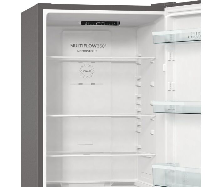 Холодильник має модуль вироблення негативно заряджених іонів, який продукує їх усередині камери пристрою. Вони притягують до себе забруднення і виводять їх назовні, залишаючи всередині холодильника очищену середу, відповідну для тривалого зберігання їжі. При цьому технологія MultiFlow 360 ° поширює аніони, тим самим допомагаючи їм швидше виконати свої функції.