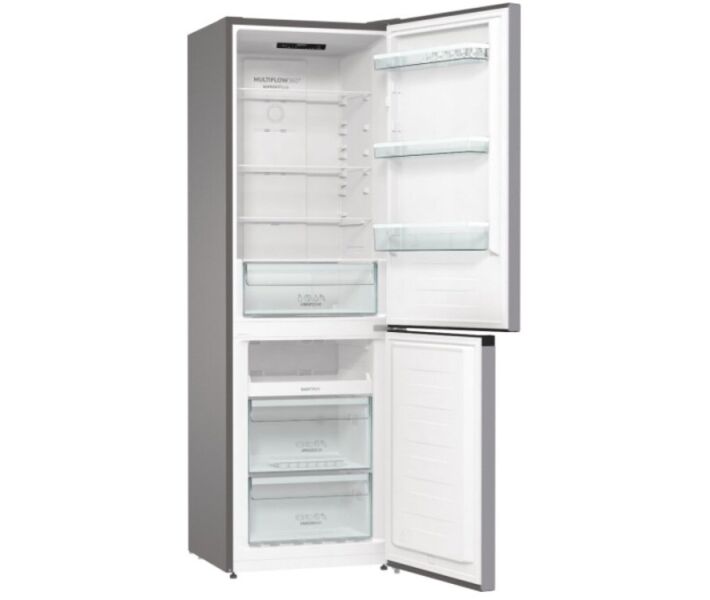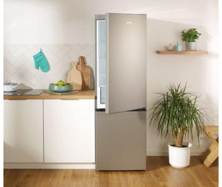 Gorenje NRK6191PS4 - просторий і місткий холодильник, який призначається для зберігання різних продуктів. Так, наприклад, свіжі овочі і фрукти краще зберігати в об'ємному контейнері CrispZone, всередині є знижена температура і тому ваші продукти будуть краще збережуться. Холодильник оснащений новою конструкцією, яка дозволяє швидко і легко очищати полки і стінки всередині пристрою.