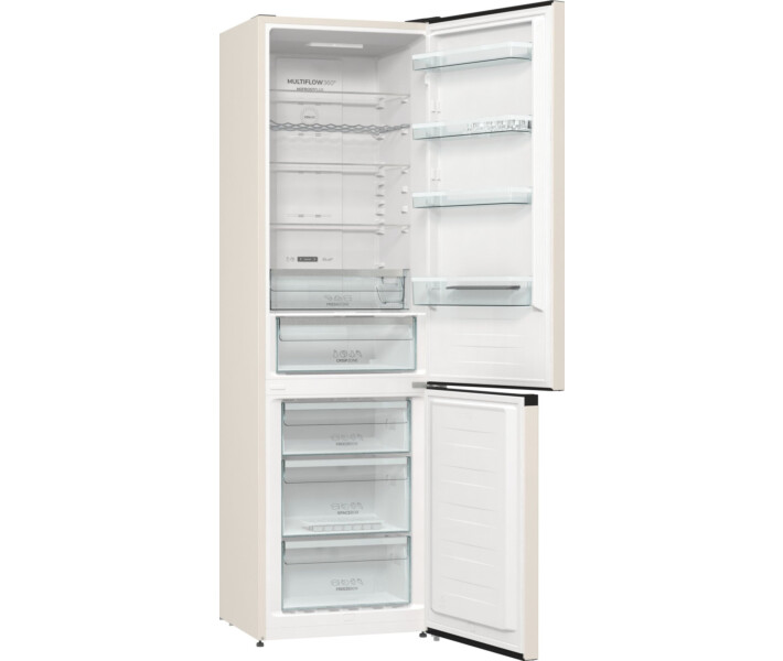 Холодильник Gorenje NRK62 має оригінальну систему розподілу потоків холодного повітря MultiFlow 360, яка забезпечує рівномірний обдув з усіх боків. Додатково при обдуві активується система подачі іонів IonAir. Фірмова технологія забезпечує знезараження повітря, усунення неприємного запаху, який може з'являтися в камері холодильника. При цьому всі продукти збережуть не тільки свіжий вигляд, але й смак і текстуру.