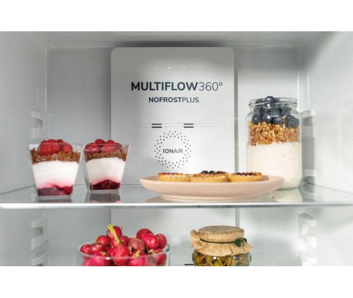 Одна з найкращих систем охолодження на ринку, встановлена в морозильній камері, запобігає накопиченню льоду та інею, щоб знизити споживання електроенергії. В результаті простір використовується оптимальним чином, а морозильну камеру не потрібно розморожувати та мити. Упаковки та окремі заморожені продукти не злипаються, що дозволяє підтримувати лад у морозильній камері.