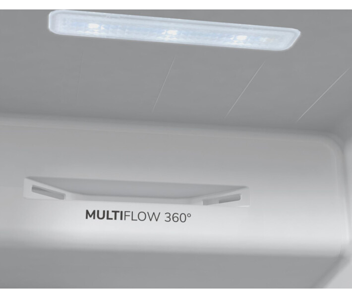 Вентиляційна система MultiFlow 360° рівномірно розподіляє повітря у холодильному відділенні, забезпечуючи оптимальну циркуляцію повітря та найкращі умови зберігання продуктів.