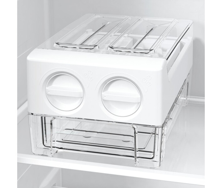 Одна з найкращих систем охолодження на ринку, встановлена в морозильній камері, запобігає утворенню інею та льоду. В результаті вам не потрібно розморожувати морозильну камеру і її простір можна використовувати більш ефективно. Пакування продуктів не примерзают один до одного, зберігаючи порядок у морозильнику.