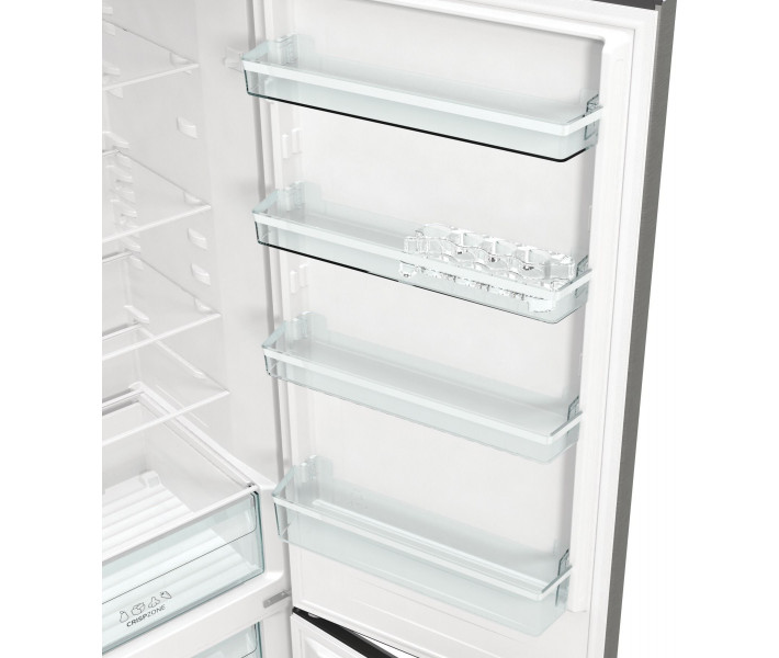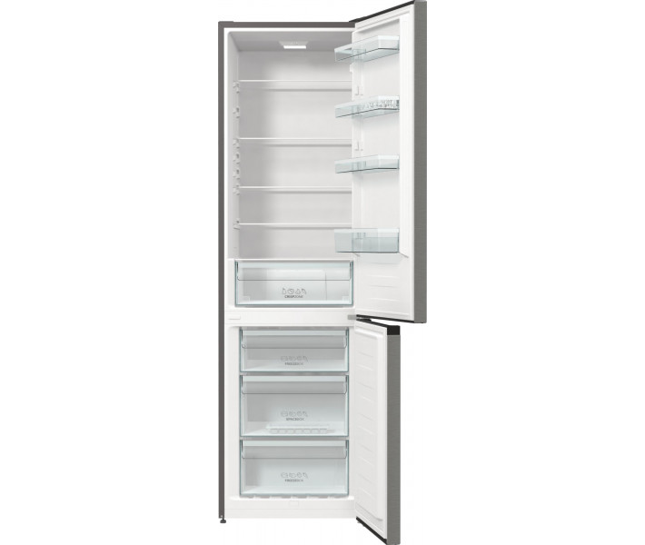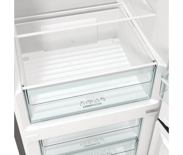 Gorenje RK6201ES4 - двокамерний холодильник від компанії Gorenje, лідера продажів побутових товарів. Дана модель GardenFresh оснащена контейнером для зберігання свіжих овочів CrispZone, знижена температура в ньому дозволяє зберігати овочі завжди свіжими і на довгий термін. Крім цього, полки холодильника оснащені гладким покриттям, яке легко мити і чистити, щоб гарантувати безпеку зберігання продуктів.