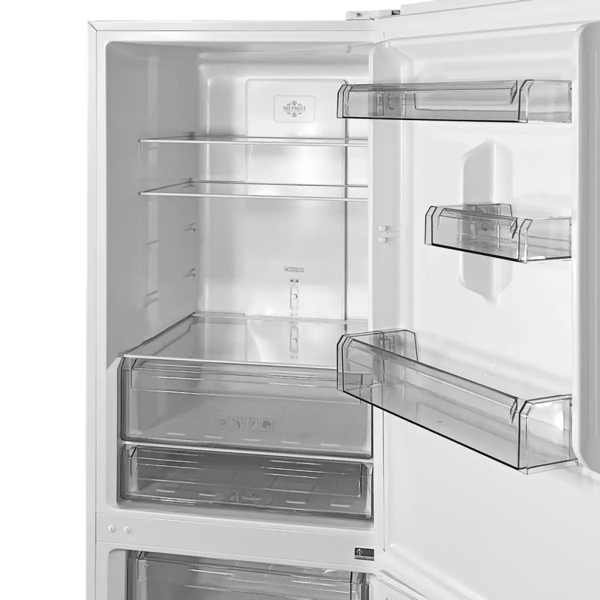 Холодильник BRH-N185D60W Grunhelm Grunhelm BRH-N185D60W - двокамерний холодильник класу А+, з високим класом енергоефективності та загальним об ємом 326 л. Морозильна камера на 83 л знаходиться знизу та оснащена 3 ящиками + (лоток для льоду). У холодильній камері 2 полиці, 1 лотки для овочів та фруктів, у двері 3 полиці + (лоток для яєць). Холодильник виконаний із якісної нержавіючої сталі з покриттям проти відбитків пальців, його легко мити і він простий у обслуговуванні. У холодильнику Grunhelm встановлено систему No-frost. Холодильник не потребує розморожування. Тип холодоагенту R600A Теплоізоляція циклопентанова Енергоспоживання 0,792 кВт / 24 г Захист від ураження електрострумом клас I