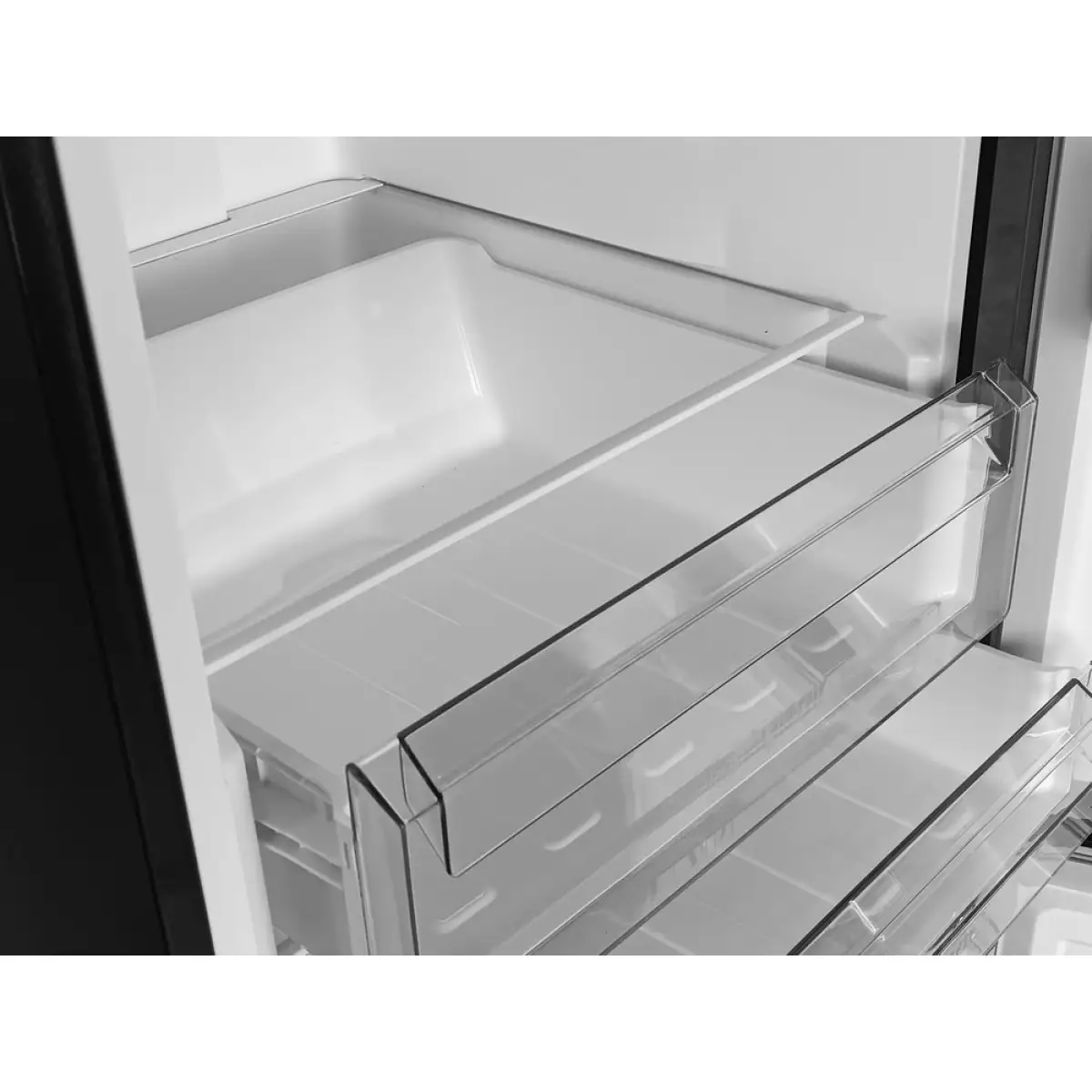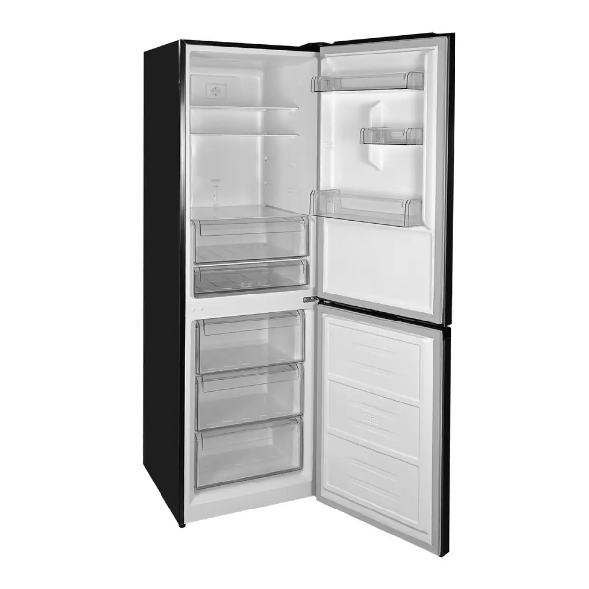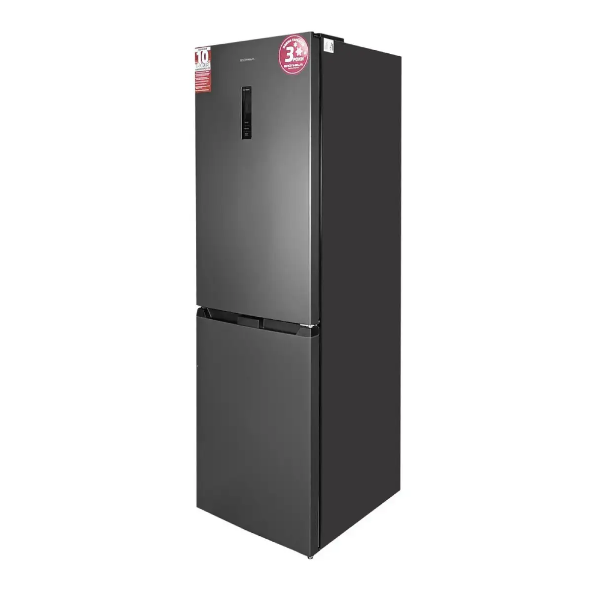 Холодильник Grunhelm BRH-N185D68DI зі розморожуванням No-Frost та електронним управлінням. Має загальний об єм 315 л, у морозильному відділенні (об єм 116 л) вміщується 3 ящики. На дверях розміщено 3 пластикові полиці. Ручки інтегровані у холодильник. Енергоспоживання класу A+, кліматичний клас SN~ST. Додаткові функції: Супер заморожування Режим ECO Режим відпустки Блокування від дітей Power-Off Memery Сигнал відкритих дверей Shop Show Mode Multi Air Flow