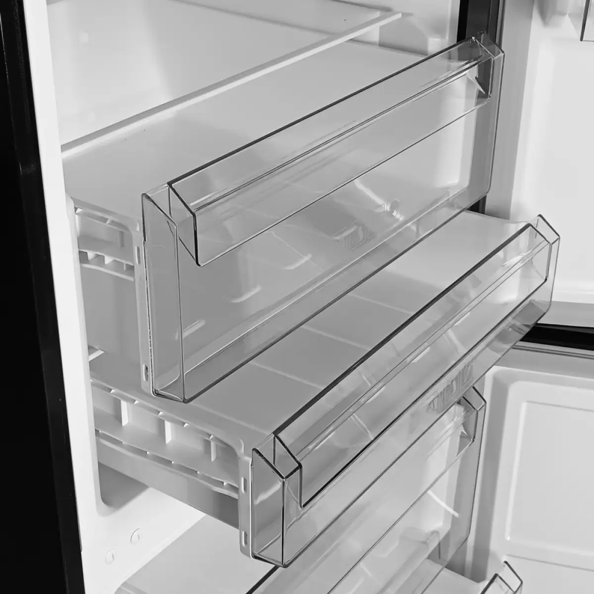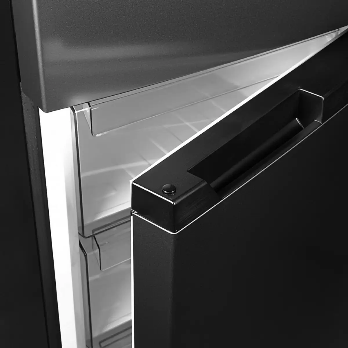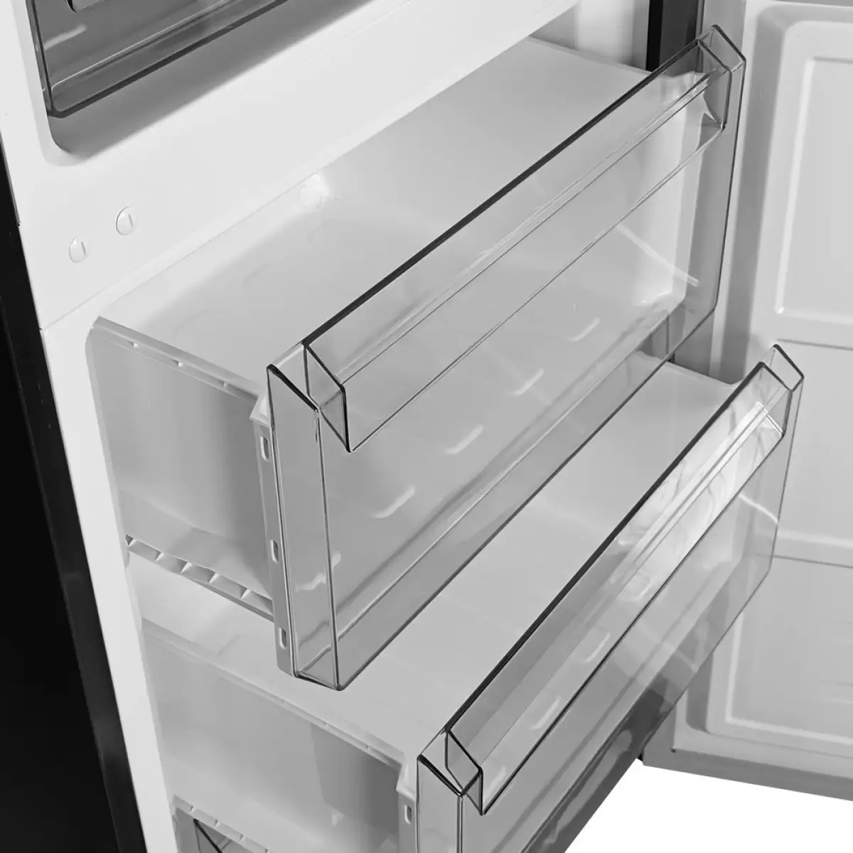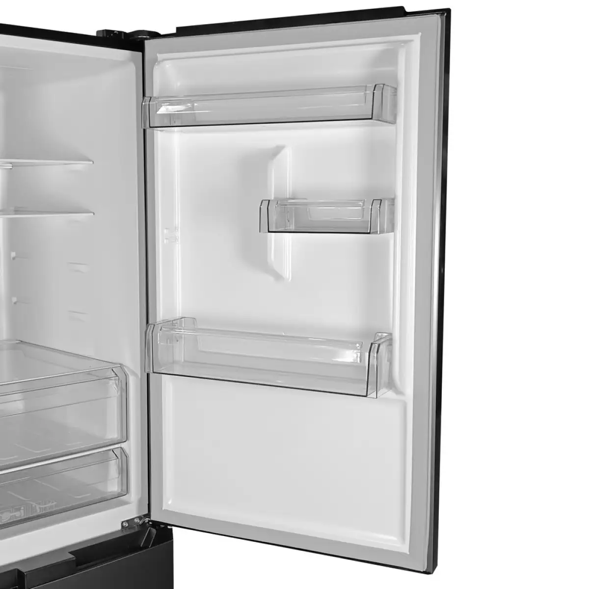 Холодильник Grunhelm BRH-N185D68DI зі розморожуванням No-Frost та електронним управлінням. Має загальний об єм 315 л, у морозильному відділенні (об єм 116 л) вміщується 3 ящики. На дверях розміщено 3 пластикові полиці. Ручки інтегровані у холодильник. Енергоспоживання класу A+, кліматичний клас SN~ST. Додаткові функції: Супер заморожування Режим ECO Режим відпустки Блокування від дітей Power-Off Memery Сигнал відкритих дверей Shop Show Mode Multi Air Flow