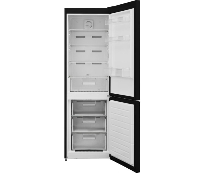 Двокамерний холодильник Heinner HCNF-V291BKF+ з технологією No Frost з нижньою морозильною камерою, об'єм 294 л, електронне управління з термостатом, суперзаморозка, світлодіодне підсвічування, режим Eco mode, а також сигналізація відчинених дверей.