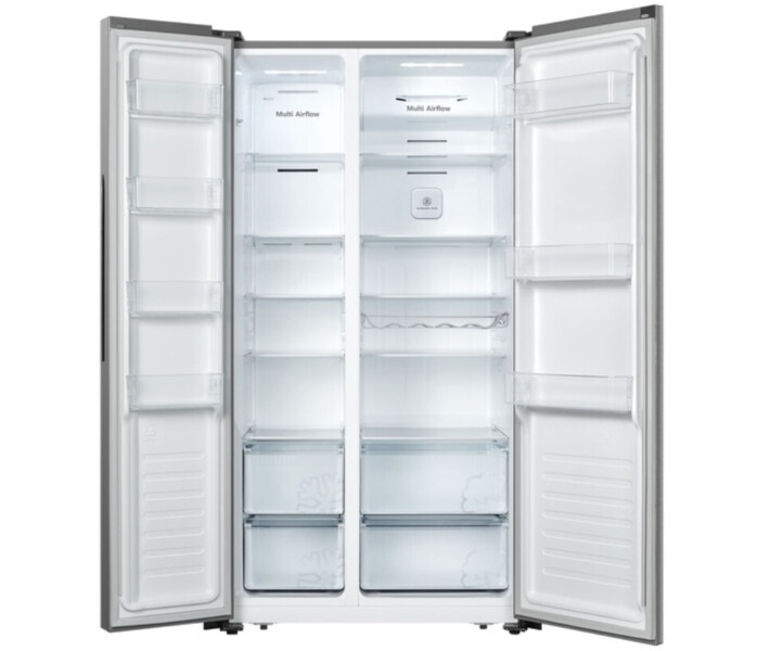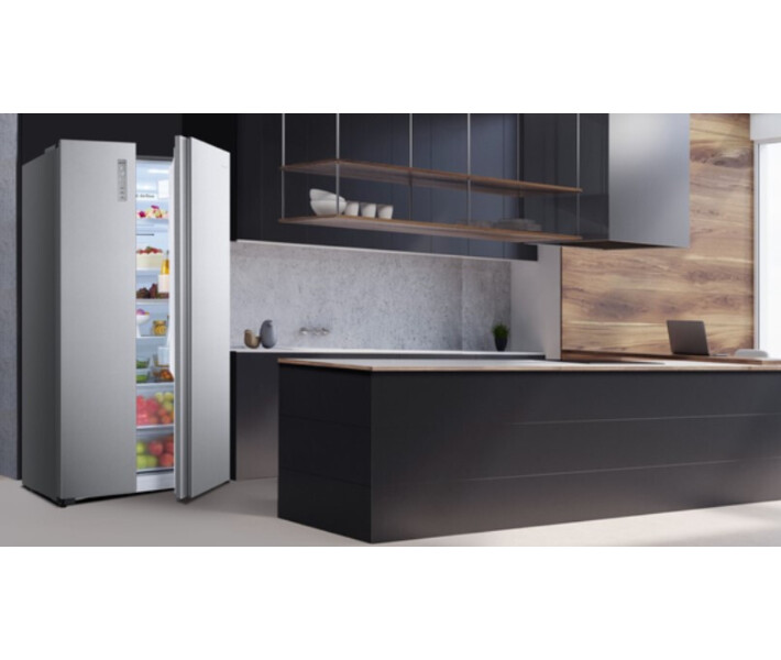 Будова холодильника Hisense RS677N4ACF передбачає зручний формат взаємно спрямованої траєкторії розкриття дверей. Так ви можете відкрити тільки одну частину пристрою, залишивши іншу закритою. Холодильники подібного формату зазвичай мають містку камеру, і дана модель не стала винятком – об'єм 508 л говорить багато про що.