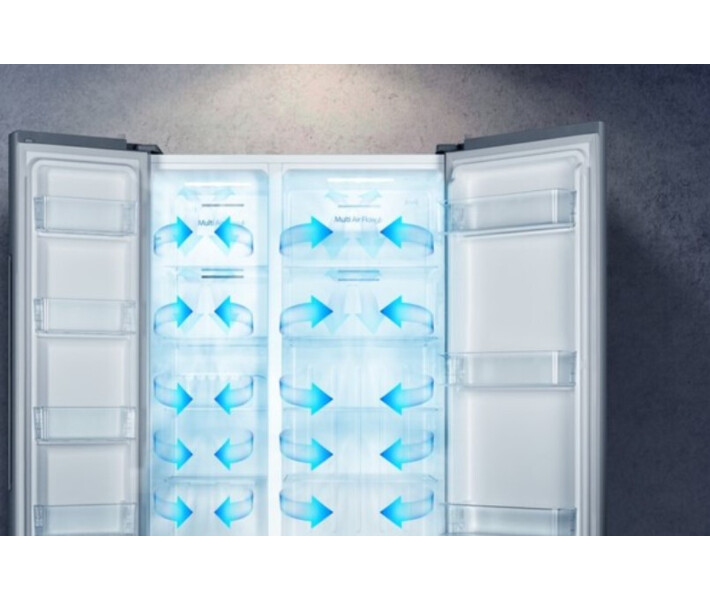 Переміщення повітряних мас усередині камери забезпечується системою Multi Air Flow, яка стежить за поширенням повітря на 360°. Найвіддаленіші відсіки не матимуть різницю в температурних показниках, тому що всі куточки камери отримують обдув – навіть зони біля дверей і в глибині.