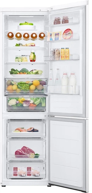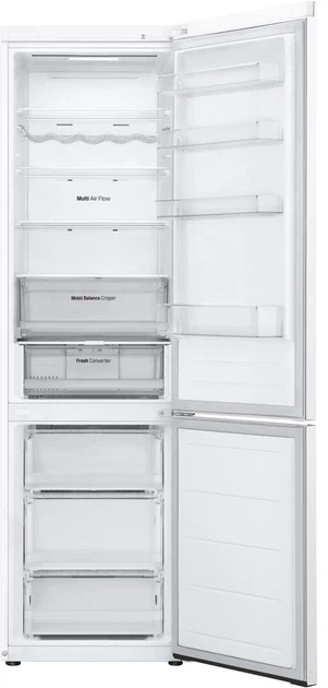 LG GW-B509FVFW — це сучасний двокамерний холодильник з нижньою морозильною камерою, створений для комфортного щоденного користування. Лаконічний білий дизайн легко впишеться в будь-який інтер’єр кухні, а продумана внутрішня організація дозволяє зручно розміщувати продукти різних розмірів.
