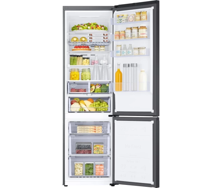Цей двокамерний холодильник відрізняється прихованими ручками, що додає йому естетичної привабливості. Морозильна камера розташована знизу, що забезпечує зручний доступ до продуктів. Система розморожування No Frost гарантує, що ви ніколи не будете мати проблем з відтаванням, а також зберігає продукти свіжими на тривалий час.