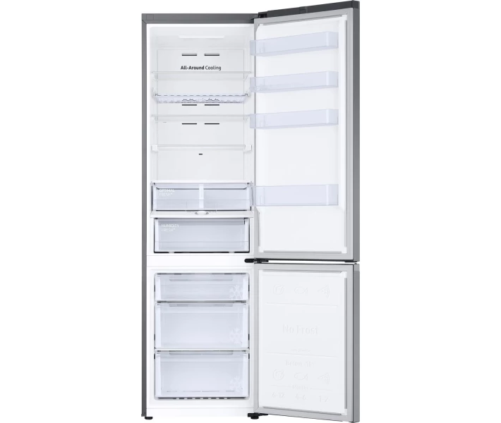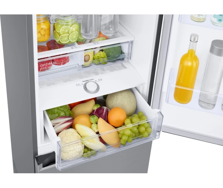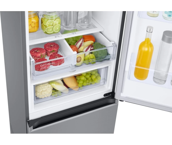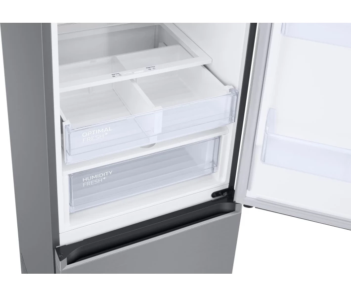 Холодильник Samsung RB38C676ES9/UA — це сучасна двокамерна модель із технологією SpaceMax, яка забезпечує збільшений внутрішній об’єм без зайвих габаритів. Система No Frost запобігає утворенню льоду, а Twin Cooling Plus підтримує оптимальну вологість у кожній камері. Прилад вирізняється економічністю класу A та тихою роботою. У металевому дизайні з інверторним компресором він поєднує стиль, надійність та ефективність.