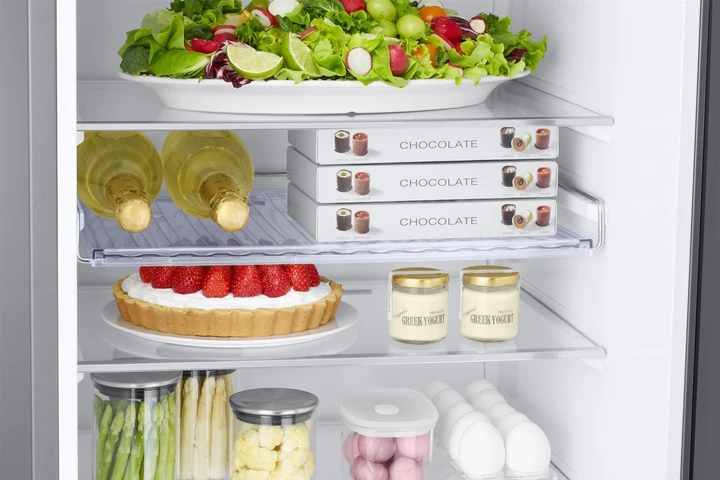 Гарантує, що вся ваша їжа належним чином охолоджена. Система всебічного охолодження рівномірно охолоджує кожне відділення від кута до кута. Вона постійно перевіряє температуру та забезпечує циркуляцію холодного повітря через оптимально розташовані вентиляційні отвори.