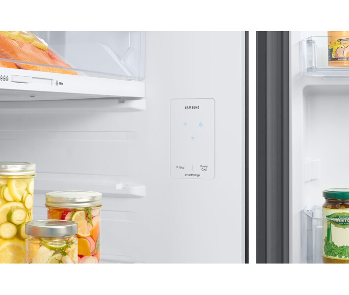 Розумне керування є ще однією перевагою цього холодильника. За допомогою програми Samsung SmartThings ви можете дистанційно контролювати та налаштовувати температуру, отримувати повідомлення про відкриті дверцята або зміни температури, що додає зручності в користуванні.
