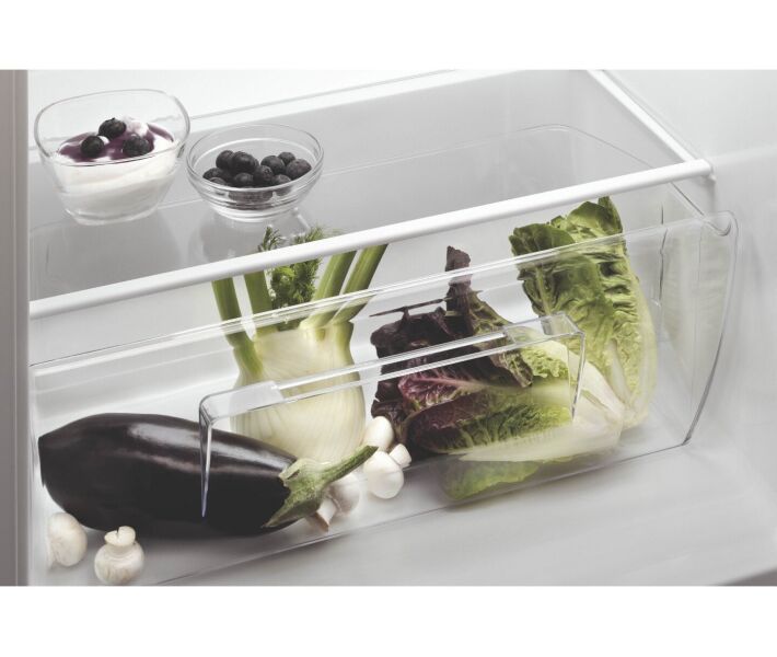 Прозорий ящик для овочів у всю ширину холодильника вміщує більше і зберігає довше. Робіть покупки спокійно: адже в вашому холодильнику можна із зручністю розмістити продукти великих розмірів.