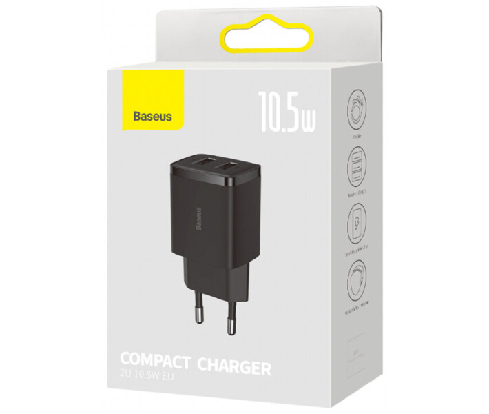 - Зарядний пристрій BASEUS Compact 2U 10.5W CCXJ010201 чорний