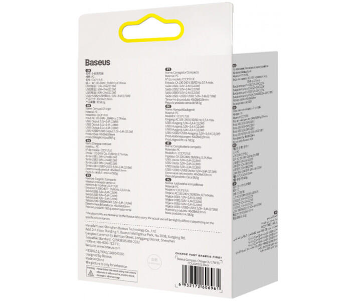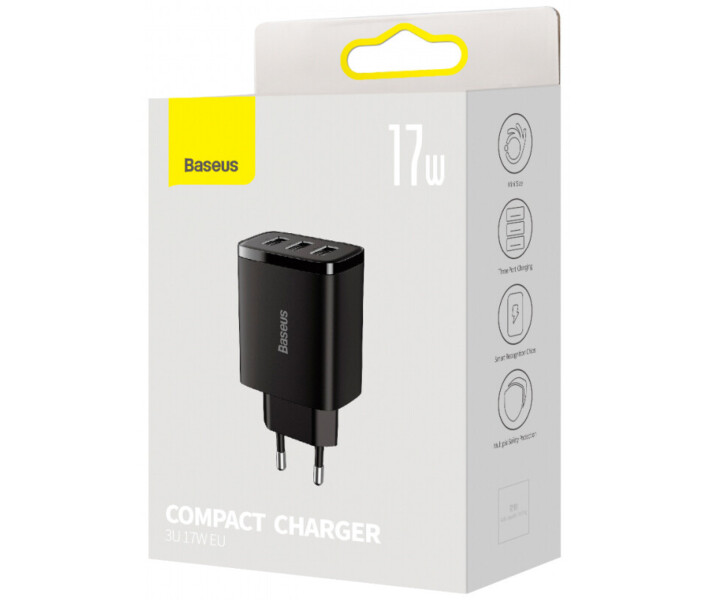 Інформація Зарядний пристрій Baseus Compact 3U 17W (CCXJ020101) чорний