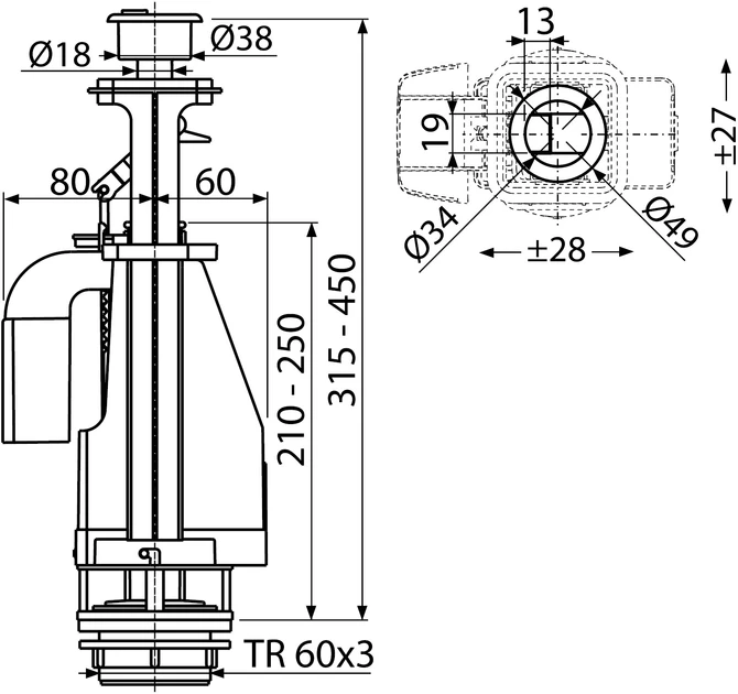 Зливний механізм із подвійною кнопкою SMUP2 від Koller Pool ідеально підходить для заміни наявного механізму схожого призначення. Універсальний механізм для керамічного бачка.