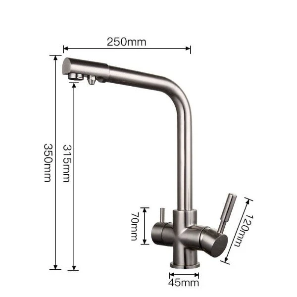Змішувач для кухні Frap F4352-5 - це пристрій, призначений для підключення до осмосному фільтру. Змішувач має в конструкції додатковим важелем управління, який дозволяє включати відфільтровану воду окремо від тієї, що надходить з водопроводу. Має Г-подібний гусак, який обертається навколо своєї осі. Така форма не зрізає кут, тому під приладом з'являється багато додаткового простору. У той же час він досить довгий, щоб під ним було комфортно працювати.