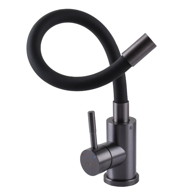 Фото Змішувач для кухні Globus Lux ALPEN SBT1-203SB-GP Графіт.,чорний Гофровилив НЕРЖ. на гайці