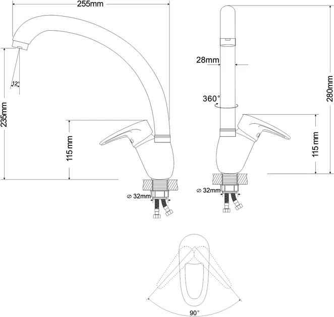 Представлена тут модель одноважільного врізного кухонного змішувача RBZ077-8V серії Boss від RJ виготовлена з латуні з покриттям блискучого кольору, має поворотний вилив з винесенням 23 см, і комплектується шлангами підведення води під діаметр 1/2".