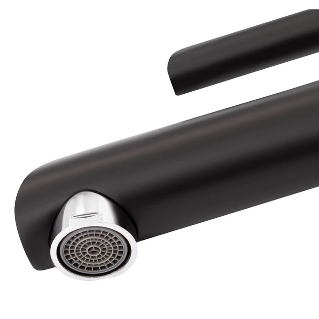 Змішувач для раковини Qtap Grand 001F Black виготовлений із високоякісної харчової латуні, стійкої до впливу корозії, ударів і тріщин. Матове чорне покриття не тільки підвищує довговічність змішувача, але й надає йому оригінального зовнішнього вигляду. Інтенсивність водного потоку та температура регулюються переміщенням важеля. Під'єднання води відбувається через гнучкі шланги з діаметром під'єднання 1/2".