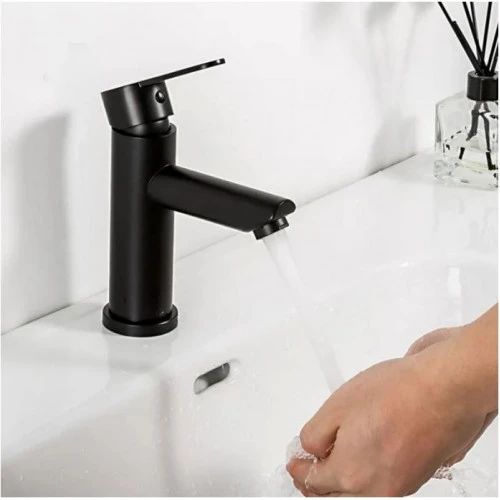 Змішувач для умивальника Frap F10801-6 чорний виготовлений з нержавіючої сталі. Стійкий до постійного впливу води, не буде іржавіти. Форма виливу низька і коротка. До раковини кріпиться на гайку. Підключення до води гнучкі підводки, вони йдуть у комплекті. Встановлено аератор, він робить натиск води м'якше і заощаджує витрати. Керамічний картридж дозволяє регулювати температуру і натиск плавно.