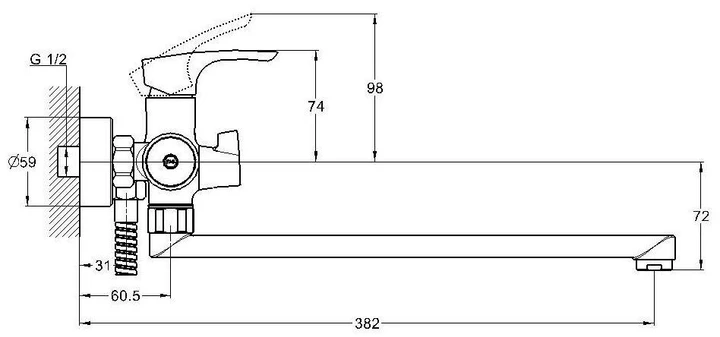 Інформація Змішувач д/ванни одноважіль. євро перемик. плоск.гусак Ø25 FAB7