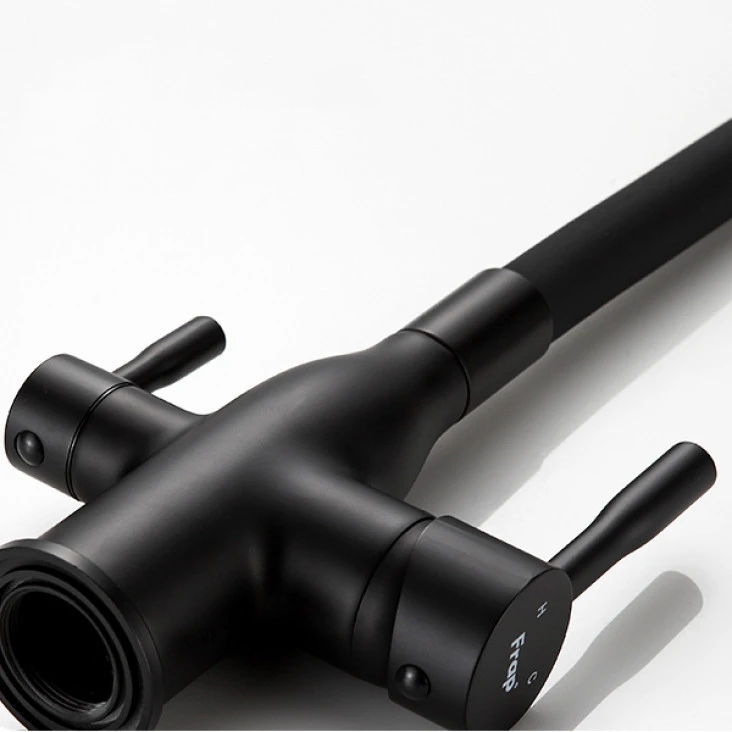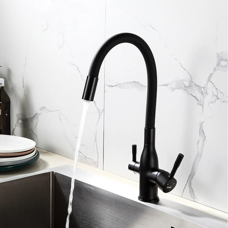 • Естетика та стійкість: Чорний колір змішувача Frap F4396-6 надає вашій кухні сучасний та елегантний вигляд. Матеріал корпусу з силуміну та латуні забезпечує високу міцність та стійкість до впливу часу.