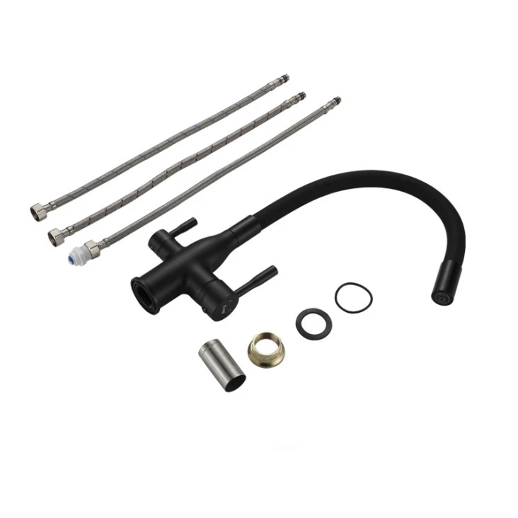 Змішувач Frap F4396-6 для кухні під фільтр одноваж. силікон.вилив лат. корп. гайка (чорний)