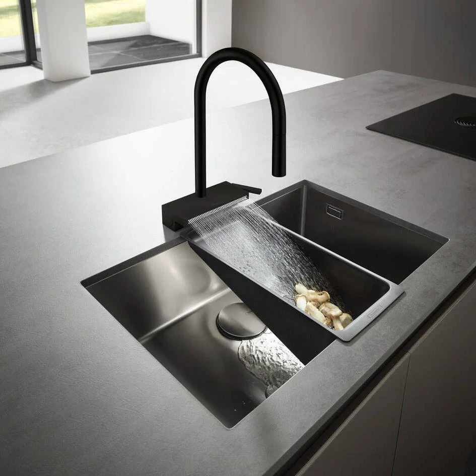 • складається з: одноважільний кухонний змішувач, короб для шланга, багатофункціональний дуршлаг