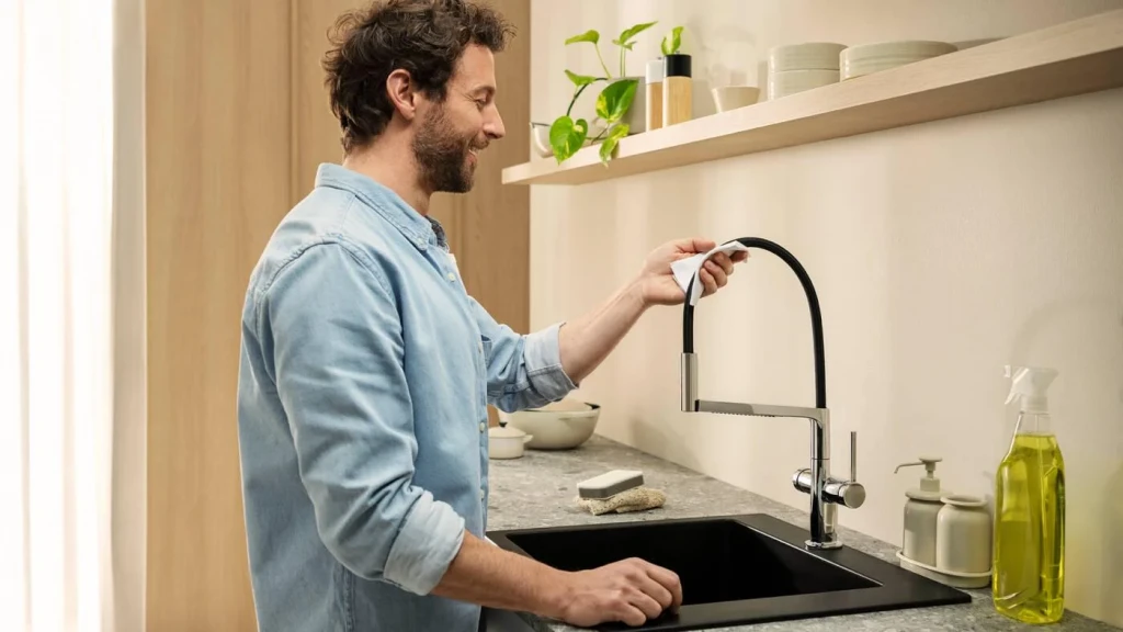 • передній струмінь душу, що замикається, струмінь повертається через натискання перемикача струменю та автоматично повертається через закриття ручки